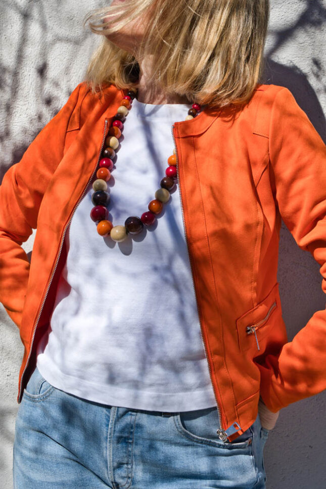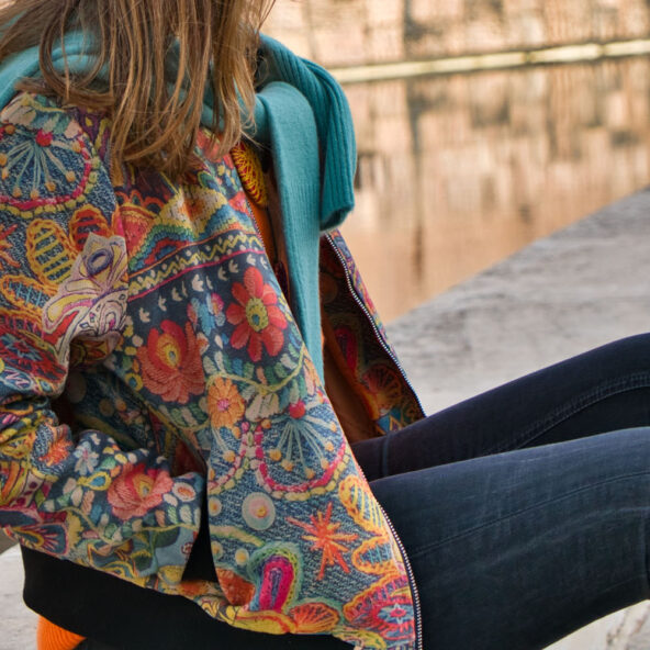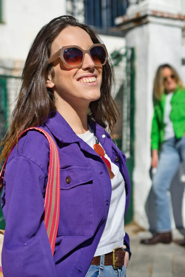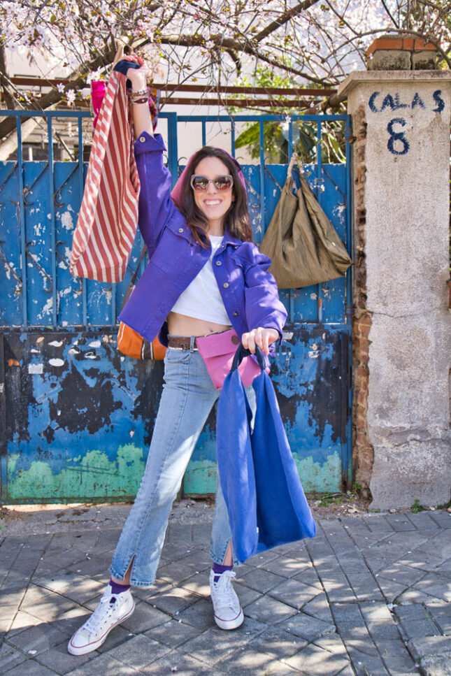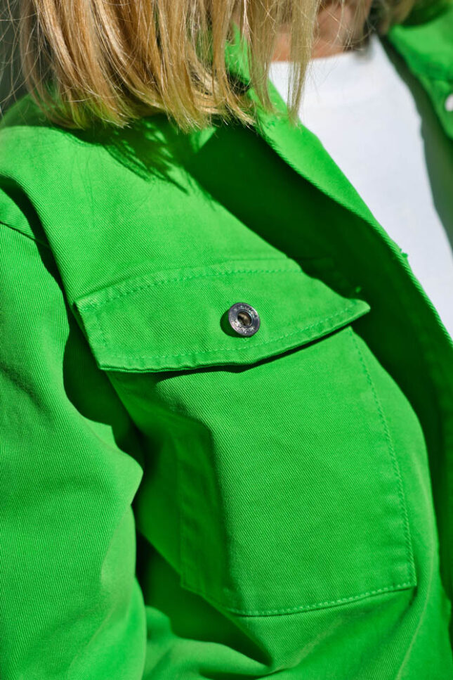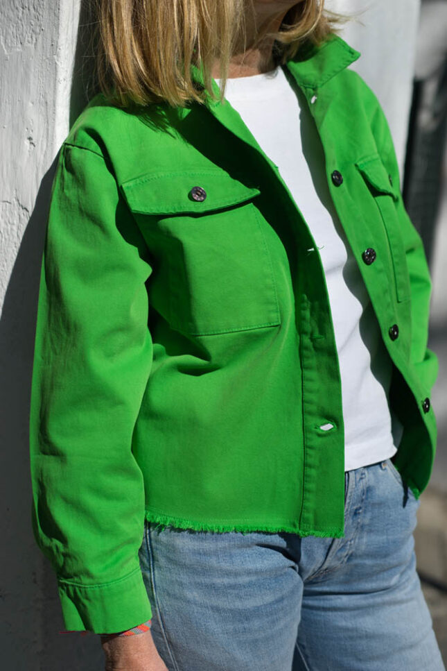 chaqueta vaquera en multitud de tonos super vivos, detalle deshilachado en la parte inferior