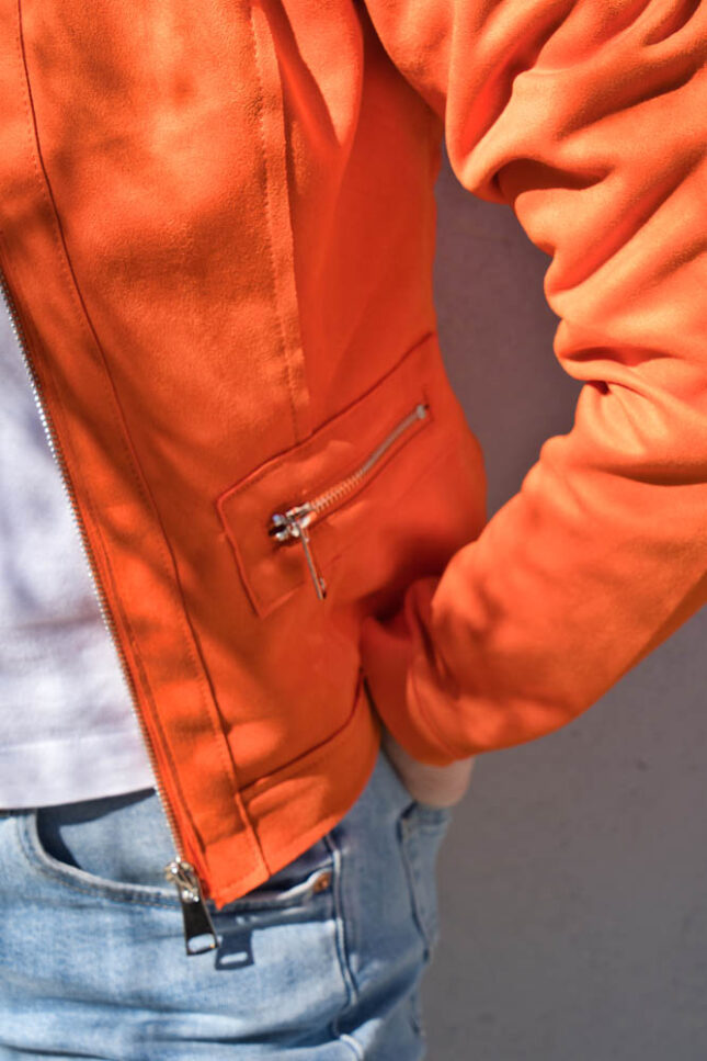 chaqueta efecto ante con cremalleras en bolsillos y cierre, muchos colores, lavable