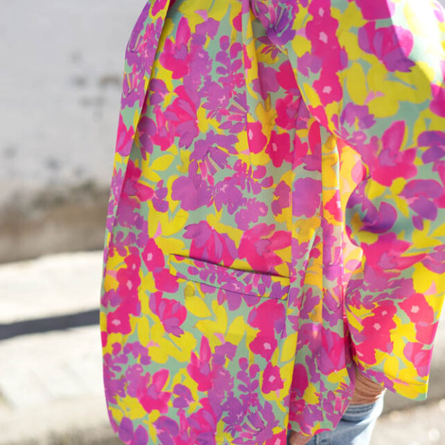 chaqueta de flores con cuello esmoquin, super ligera y cómoda, varios modelos y tallas